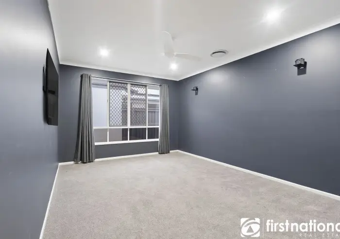 Additional highlights include a separate carpeted media room for movie nights, smart lighting, and zoned ducted air-conditioning controllable via smartphone or wall panel. A 6.6kW solar system and solar hot water ensure the home is energy-efficient and cost-effective year-round.