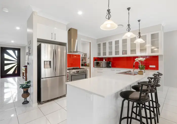 The Mark Cheney Team is proud to present this beautiful family home positioned in an extremely quiet location, backing directly onto reserve. Set on a wide block with mountain views and established trees, this thoughtfully upgraded property offers space, privacy and premium inclusions throughout — from the American barn with 3-phase power to the high-ceilinged interiors and multiple living zones designed for modern family living.