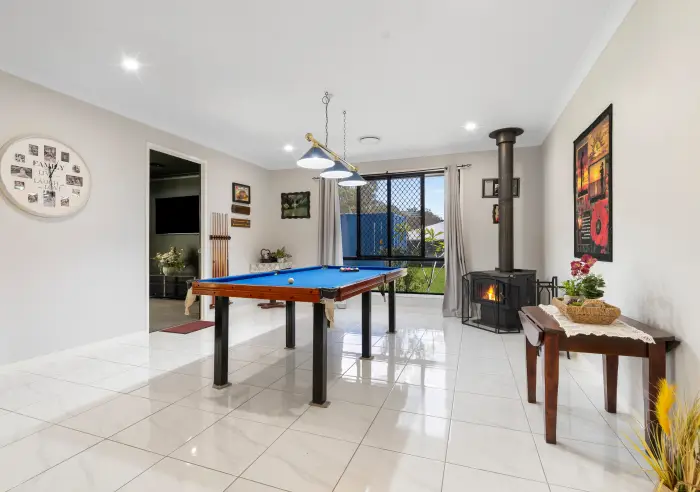 • Additional tiled living area with feature stone fireplace